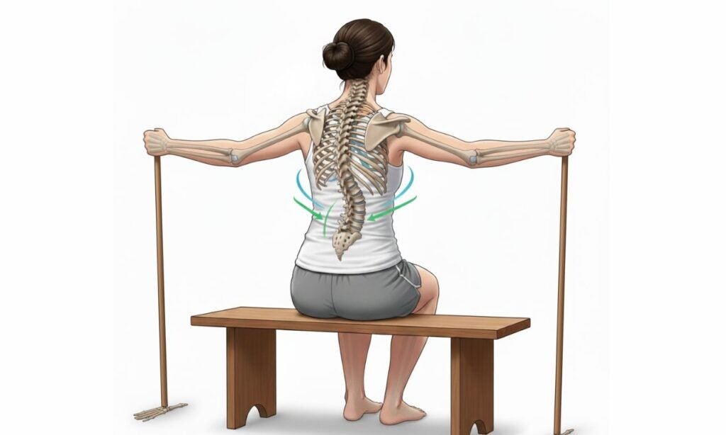 - Por quê: Fortalecer musculaturas que estabilizam a coluna ajuda a manter melhor alinhamento.
